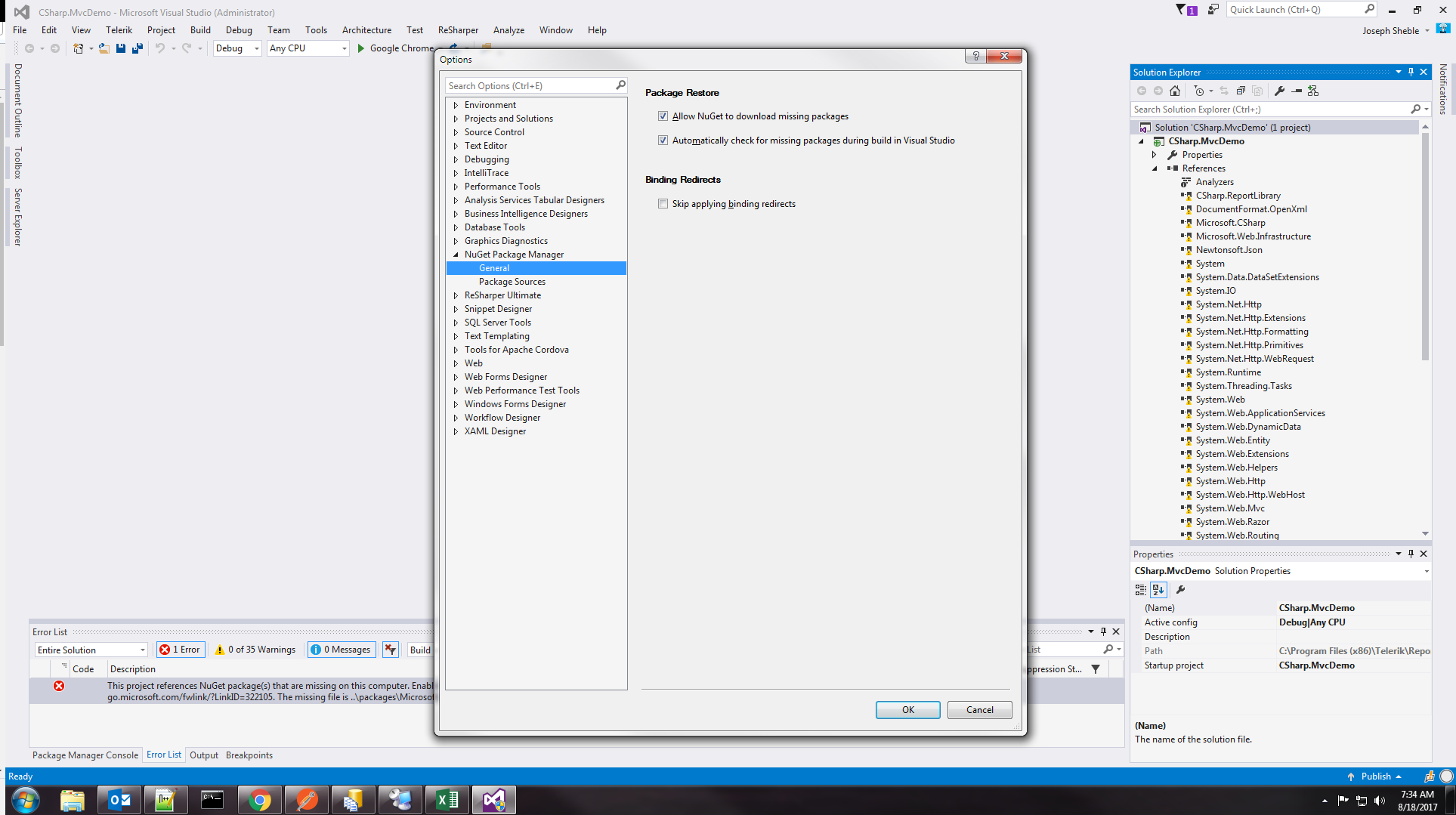 The exact error is: Error This project references NuGet package(s) that are missing on this computer. Enable NuGet Package Restore to download them. For more information, see http://go.microsoft.com/fwlink/?LinkID=322105. The missing file is ..\packages\Microsoft.Bcl.Build.1.0.21\build\Microsoft.Bcl.Build.targets.CSharp.MvcDemoC:\Program Files (x86)\Telerik\Reporting R2 2017\Examples\CSharp\MvcDemo\CSharp.MvcDemo.csproj256