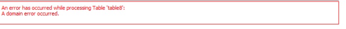 I simply have a table named "table8" and this table is bound to datasource when i ran the report is shows domain error occured. Please see attached screen shot of error.