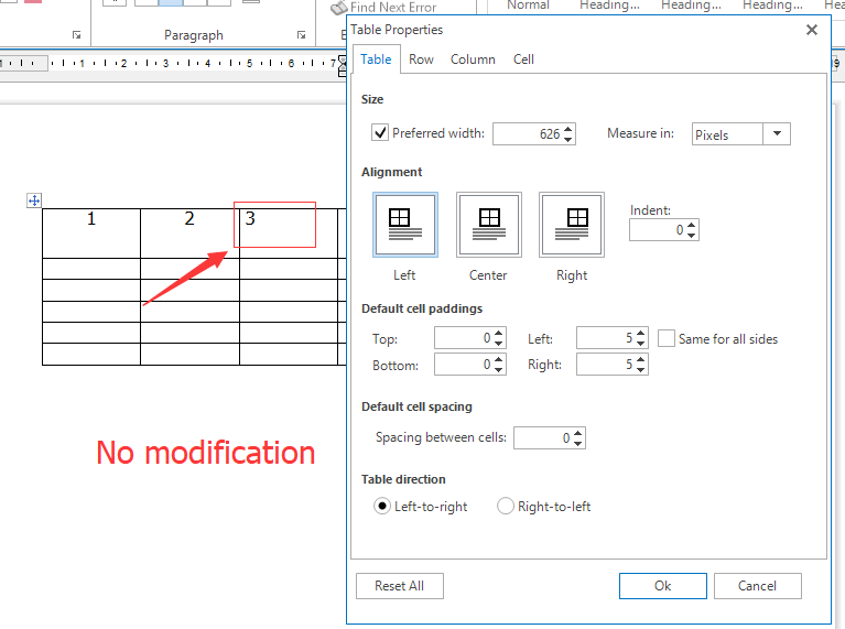 Thank you for the additional information. I managed to observe the issue and I have logged it on our feedback portal, here: FIX. RadRichTextEditor - iterating the rows in the Table Properties dialog resets the text alignment of the table cells. I have also updated your Telerik points. Additionally, you can subscribe to the item and be updated when its status changes. Due to the nature and complexity of the issue, I cannot suggest you a suitable workaround.