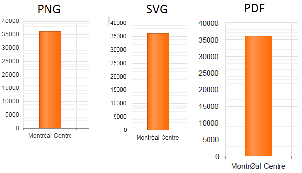 The PDF generated by kendo chart seems to have a problem dealing with accents. I attached an image showing 3 export made from the same chart. Please note that Montréal is displayed correctly in the PNG and the SVG but not in the PDF.