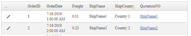 <telerik:GridTemplateColumn HeaderText="QuotationNO" HeaderStyle-Width="250px" UniqueName="QuotationNo"> <ItemTemplate> <%#DataBinder.Eval(Container.DataItem, "ShipName")%> </ItemTemplate></telerik:GridTemplateColumn>Then, an additional link is added to the cell in the code behind: