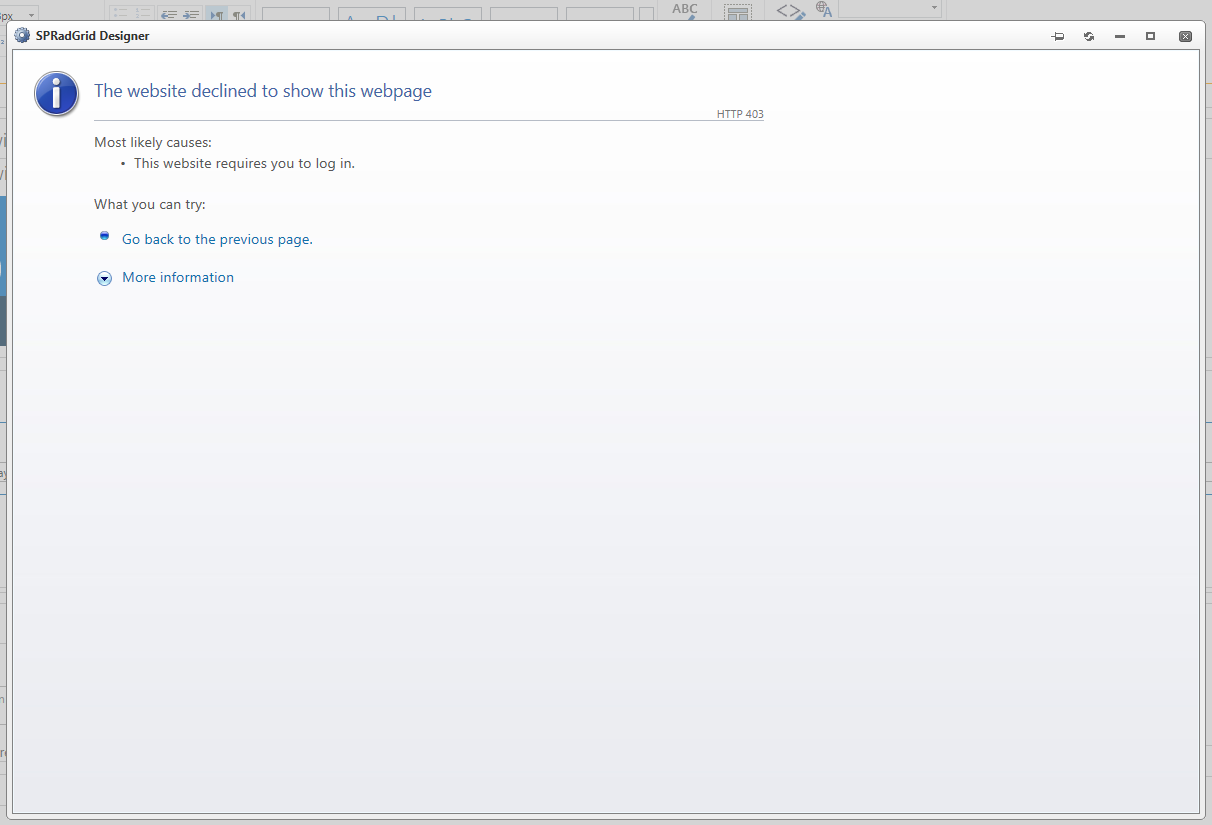 When I am opening RadGrid Designer page, it is showing me HTTP 403 Forbidden. I have site collection administration permissions.