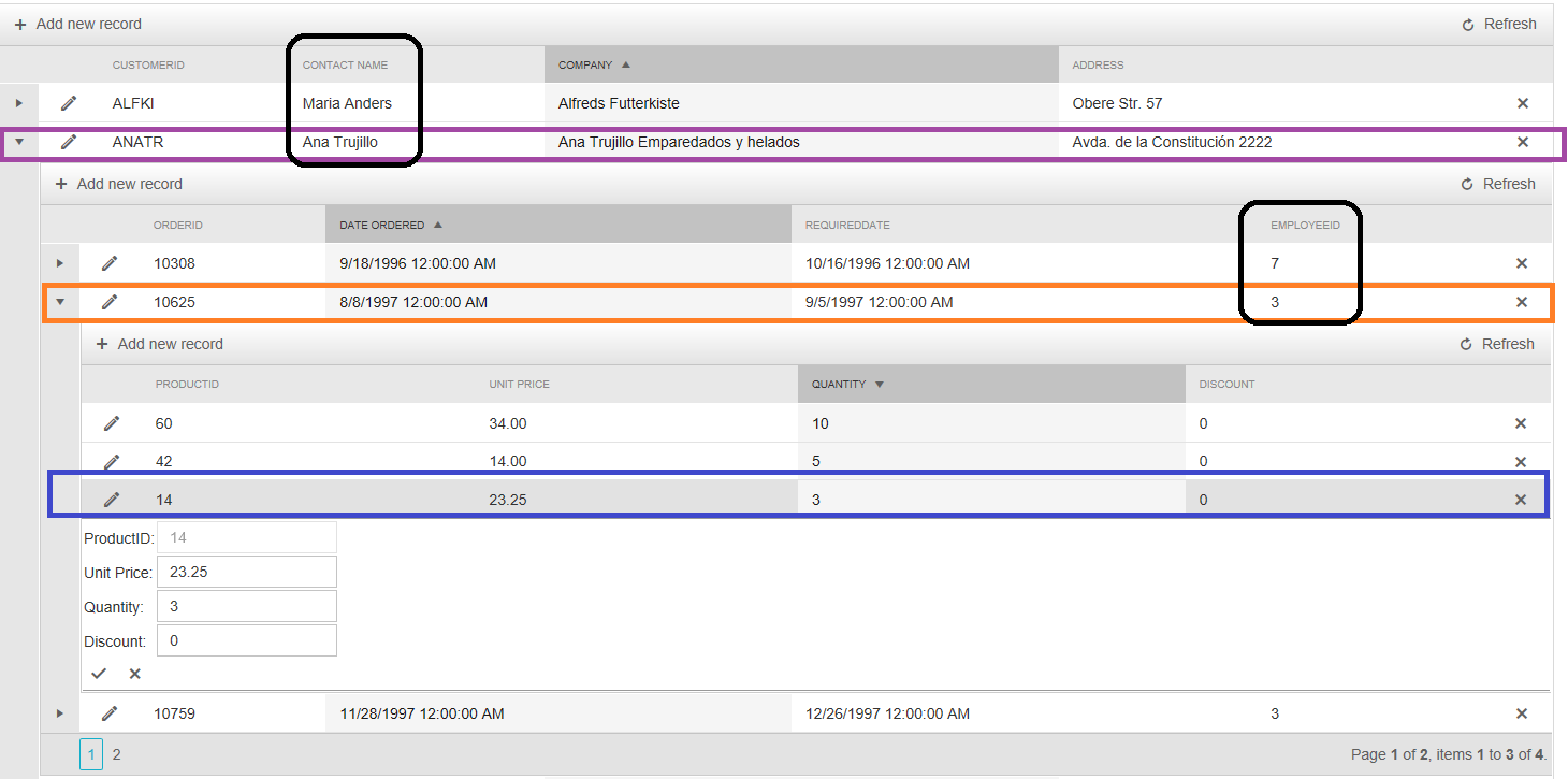 Another word when I am editing DetailTables: 'Details' with Productid: 14: