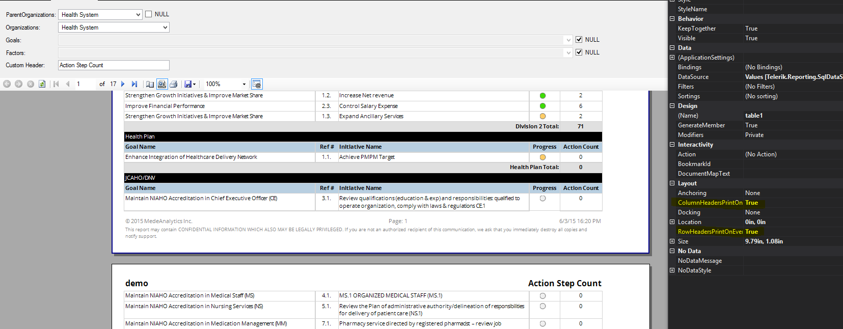 I want my headers to repeat on each page of a report that spans more then one page. But the 'RowHeadersPrintOnEveryPage' isn't functioning. I think this may be because I had removed the table header row on accident.