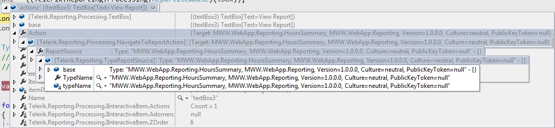 Hello, i would like to get action (in mine case it is NavigateToReport) object on textbox databound event.
