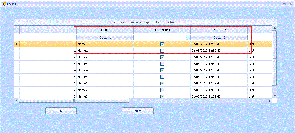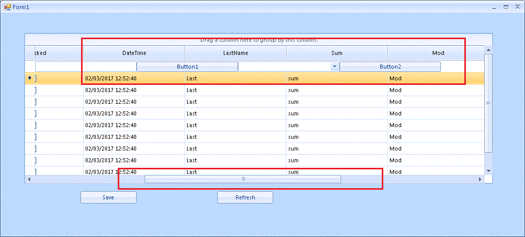 2) after Scrolling Image - after the scrolling button1 is coming between DateTime and LastName columns ,Button2 is coming between Sum&Mod coulmns.