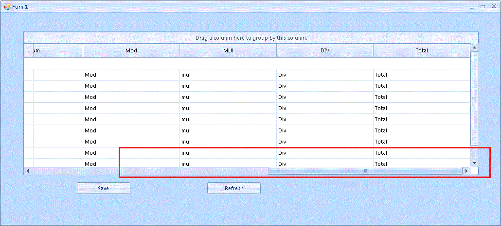 dt.Rows.Add(i, "Name" + i, i % 2 == 0, DateTime.Now,"Last","sum","Mod","mul","Div","Total");