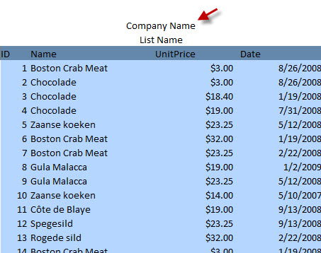 How can I add some extra text on above the header? Like if I need to add the name of the company and list name.