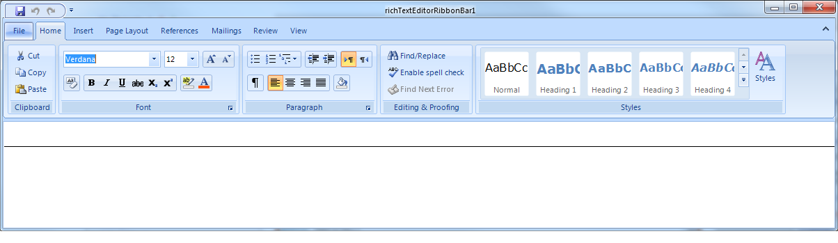 public RadForm1(){ InitializeComponent(); RadDocument document = new RadDocument(); Section section = new Section(); Table table = new Table(); table.StyleName = RadDocumentDefaultStyles.DefaultTableGridStyleName; TableRow row1 = new TableRow(); TableCell cell1 = new TableCell(); Paragraph p1 = new Paragraph(); Span s1 = new Span(); s1.Text = " "; p1.FontSize = 0; p1.LineSpacing = 0; p1.SpacingAfter = 0; p1.SpacingBefore = 0; p1.Inlines.Add(s1); cell1.Blocks.Add(p1); row1.Cells.Add(cell1); table.Rows.Add(row1); section.Blocks.Add(new Paragraph()); section.Blocks.Add(table); section.Blocks.Add(new Paragraph()); document.Sections.Add(section); this.radRichTextEditor1.Document = document;}I hope this information helps. If you have any additional questions, please let me know.