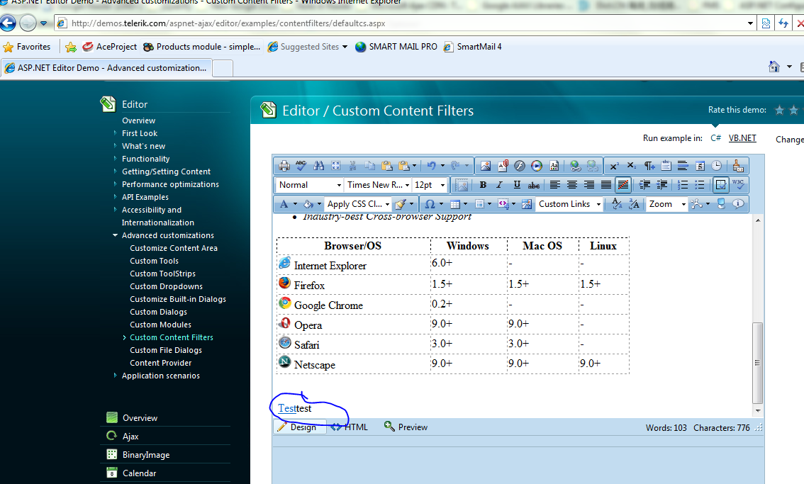 I just had a problem when insert an hyperlink in the editor. It works perfect when I insert hyperlink in the middle of the text. The problem only happens when I insert the hyperlink in the first of the paragraph. The editor will automatically add   in front of the text and remove the space after the text.