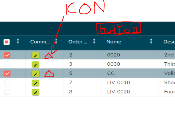 I want to be able to add an icon to the selected rows (preferably in the command column). But, the icon should be added only on button click. And I need the icon to stay even if I unselect the row.
