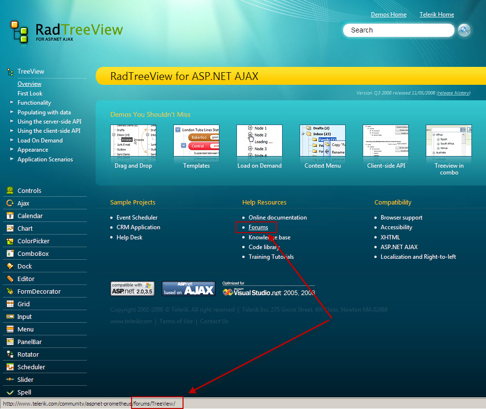 On your product demo pages for ASP.NET AJAX controls it would be very handy to have a link going to the specific forum for the control you're viewing.