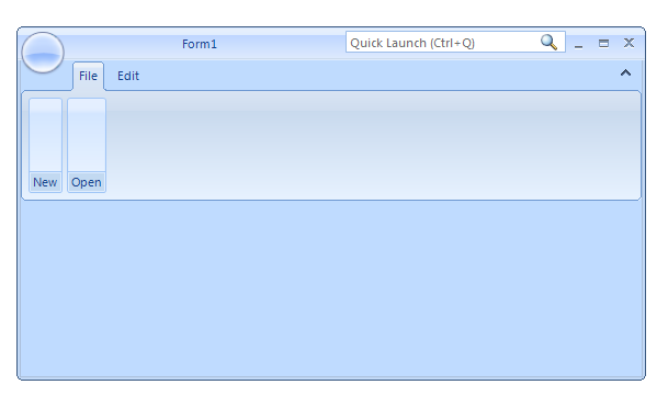 You can achieve your requirement by inserting the desired search box in the RibbonBarElement.RibbonCaption.SystemButtons.Children collection. Here is a sample implementation: