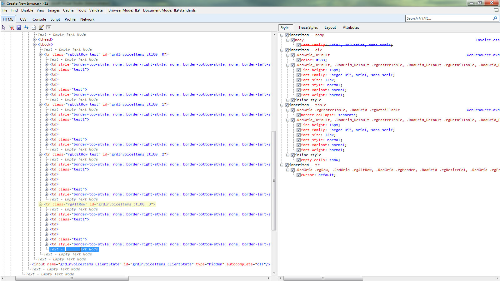 Thank you kindly for you reply, but I was unable to emplement your sample it just did not work for me maybe it's because im using sql database. However I think I'm really close to making this work with your assitance. When I call my function to insert a new row and rebind to refresh radgrid everythinig works fine expect the inserted row is just a plain grey row and not the row i'm expecting which has textbox controls. I will attach a screen shot so you can get a better idea aswell as the browse source code. In the browser source you can see where there are 4 rows but the forth row has a different class and I think this is why I'm not getting the row im expecting.