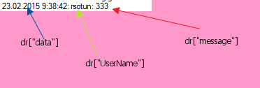 using (SqlDataReader dr = cmd.ExecuteReader()) { while (dr.Read()) richTextBox1.AppendText("\n" + dr["data"] + ": " + dr["UserName"] + ": " + dr["message"].ToString()); }11 Answers, 1 is accepted