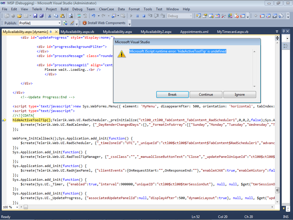 For the jQuery, after I placed the script, I receive the error "Microsoft JScript runtime error: 'hideActiveToolTip' is undefined".