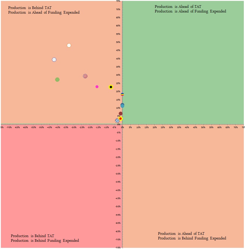 I have a scatter chart that I have broken out in 4 sections (xAxis (-100,100); yAxis (-100,100)). I would like to place a title/header in each section to let the user know that when a plot point is in the section, it means "this". The image attached shows what I am looking for. The green means ahead of TAT/Funding, Red behind in both, etc.