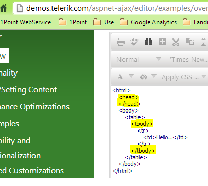 On the RAD Editor , when user Copy the HTML from outside, and paste in to RAD Editor, and then verify the HTML code the additional <tbody> tag is added automatically in to HTML BODY.