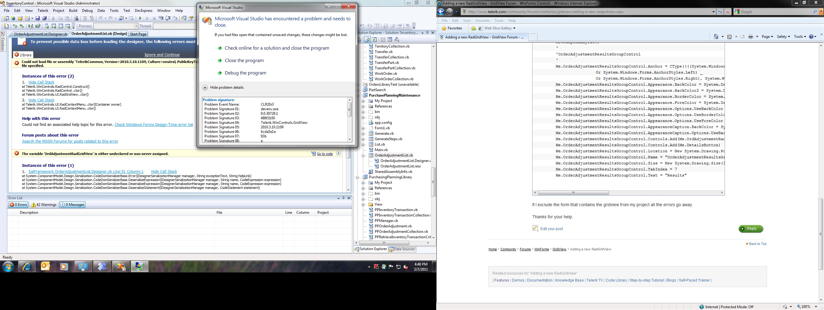 If I exclude the form that contains the gridview from my project all the errors go away.