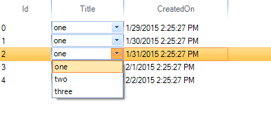 private void radListView1_CellCreating(object sender, ListViewCellElementCreatingEventArgs e){ DetailListViewDataCellElement cell = e.CellElement as DetailListViewDataCellElement; if (cell != null && cell.Data.Name == "Title") { e.CellElement = new CustomDetailListViewDataCellElement(cell.RowElement, e.CellElement.Data); }}public class CustomDetailListViewDataCellElement : DetailListViewDataCellElement{ private RadDropDownListElement dropdown; public CustomDetailListViewDataCellElement(DetailListViewVisualItem owner, ListViewDetailColumn column) : base(owner, column) { } protected override void CreateChildElements() { base.CreateChildElements(); this.dropdown = new RadDropDownListElement(); this.dropdown.DropDownStyle = Telerik.WinControls.RadDropDownStyle.DropDownList; this.dropdown.DataSource = new List<string>() { "one", "two", "three" }; this.Children.Add(this.dropdown); } protected override Type ThemeEffectiveType { get { return typeof(DetailListViewHeaderCellElement); } } public override void Synchronize() { base.Synchronize(); this.Text = ""; }}Note that RadDropDownListElement hosts the MS TextBox if the DropDownStyle property is set to DropDown. Using controls in RadListView cells may slow down the scrolling and will cause visual glitches as they do not support clipping. A better option would be using custom editors. Please refer to ListView >> Checkboxes and editors help article >> Switching Editors section.