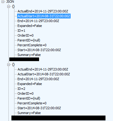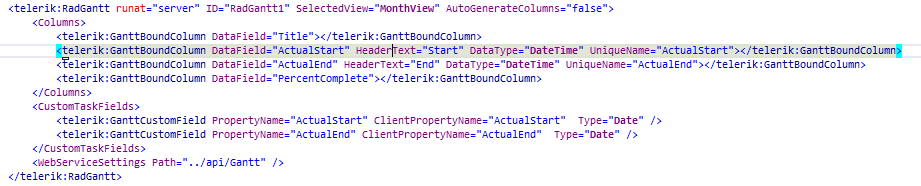 I've tried to add some custom properties to the Gantt chart. But the added datetime columns just list undefined.