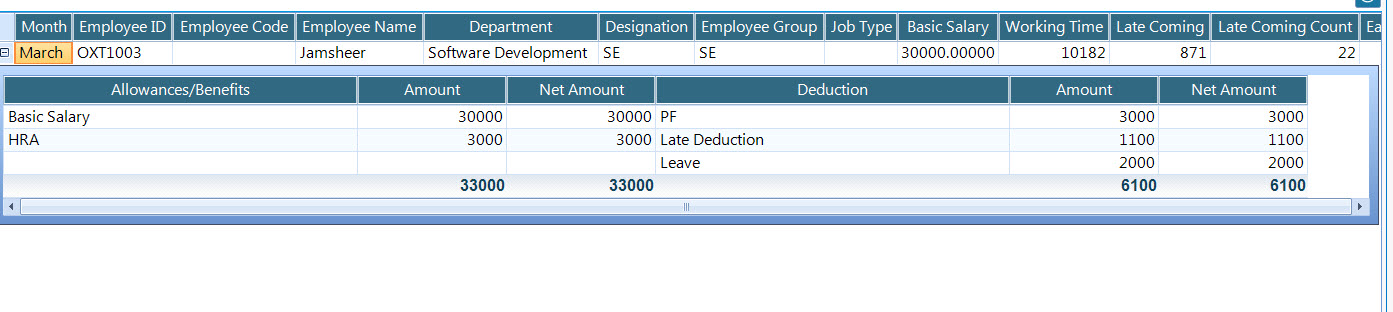 This My Code :GridViewTemplate template = new GridViewTemplate(); dgvSalaryReport.DataSource = null; dgvSalaryReport.DataSource = ds.Tables[0]; //DataTable template.DataSource = null; template.DataSource = dtForPaySlip; //DataTable template.EnableSorting = false; template.AutoSizeColumnsMode = GridViewAutoSizeColumnsMode.None; template.ShowRowHeaderColumn = false; template.AllowAddNewRow = true; template.EnableAlternatingRowColor = true; template.HorizontalScrollState = ScrollState.AlwaysShow; template.VerticalScrollState = ScrollState.AlwaysShow; dgvSalaryReport.MasterTemplate.Templates.Add(template); GridViewRelation relation = new GridViewRelation(dgvSalaryReport.MasterTemplate); relation.ChildTemplate = template;