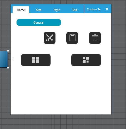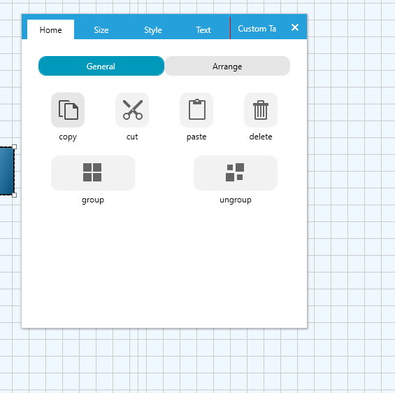 Then you can also download and examine the CustomSettingsPane example in our SDK. It demonstrates how to add a new custom tab to the SettingsPane. Once you open the project please take a look at the Resources.xaml ResourceDictionary where you can find a customized style and specifically ControlTemplate of the SettingsPaneView control. In the ControlTemplate of the SettingsPaneView there is a SettingsPaneStyleControl - which is the default Style tab of the SettingsPane and a custom tab - Toolbox. In the custom tab there is a TextBox that allows users to enter a value. This value is defined to be taken and applied on a business property in the DataContext of the currently edited shape. Please note the following attached properties: