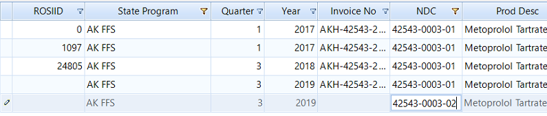 For example, in the screen shot, the user has filtered the rows to State Program = "AK FFS" and NDC = "42543-003-01". The user want to see the existing values while creating the new record i.e., NDC 42543-003-02. When the user enters all the fields and the record gets added it disappears because of the current filters applied. Is there a way to by-pass the filters on the newly added rows?