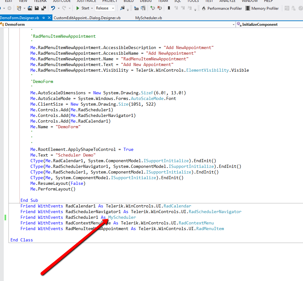 RadTrackBarElement trackbar = new RadTrackBarElement();RadTrackBarElement trackbar2 = new RadTrackBarElement();public Form1(){ InitializeComponent(); trackbar.TrackBarMode = TrackBarRangeMode.Range; trackbar.Minimum = 20; trackbar.Maximum = 120; trackbar.Ranges[0].Start = 50; trackbar.Ranges[0].End = 90; trackbar.Padding = new System.Windows.Forms.Padding(3); radRibbonBarGroup1.Items.Add(trackbar); trackbar.Ranges.CollectionChanged += Ranges_CollectionChanged; trackbar2.TrackBarMode = TrackBarRangeMode.SingleThumb; trackbar2.Padding = new System.Windows.Forms.Padding(3); radRibbonBarGroup2.Items.Add(trackbar2); trackbar2.ValueChanged += trackbar2_ValueChanged;}private void Ranges_CollectionChanged(object sender, Telerik.WinControls.Data.NotifyCollectionChangedEventArgs e){ Console.WriteLine("Trackbar1 start range : " + trackbar.Ranges[0].Start); Console.WriteLine("Trackbar2 end range : " + trackbar.Ranges[0].End);}private void trackbar2_ValueChanged(object sender, EventArgs e){ Console.WriteLine("Trackbar2 : " + trackbar2.Value);}I hope this information helps. If you have any additional questions, please let me know.