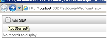 I have telerik radgrid being used in the application with the add option also included in the grid. I added AddNewRecordText as "Add User & Employee" for add button. Please note that there is an ampersand in the text that was given. Now the "Add" button that appears on the grid shows the text correctly. However the tooltip for the button doesn't show up right. It encodes the ampersand symbol and shows it in the tooltip. Is there any workaround to fix this problem?