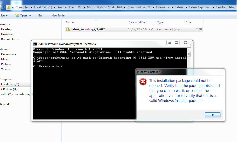 msiexec /i Telerik_Reporting_Q3_2012_DEV.msi -l*xv install.log