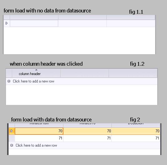 The grid was bound, just so happen that the table was empty, the blank row is no problem, but the text "Click here to add new row" does not appear until we click the column header, is there a way we could show it if initially the table is empty.
