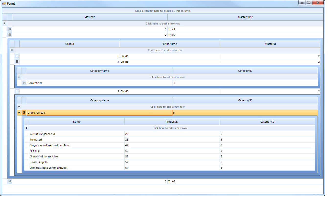 I have a winform app that is using Telerik RadGridView. It has several GridViewTemplate and in 1 of the GridViewTemplate I want to have self reference relation, so my question is