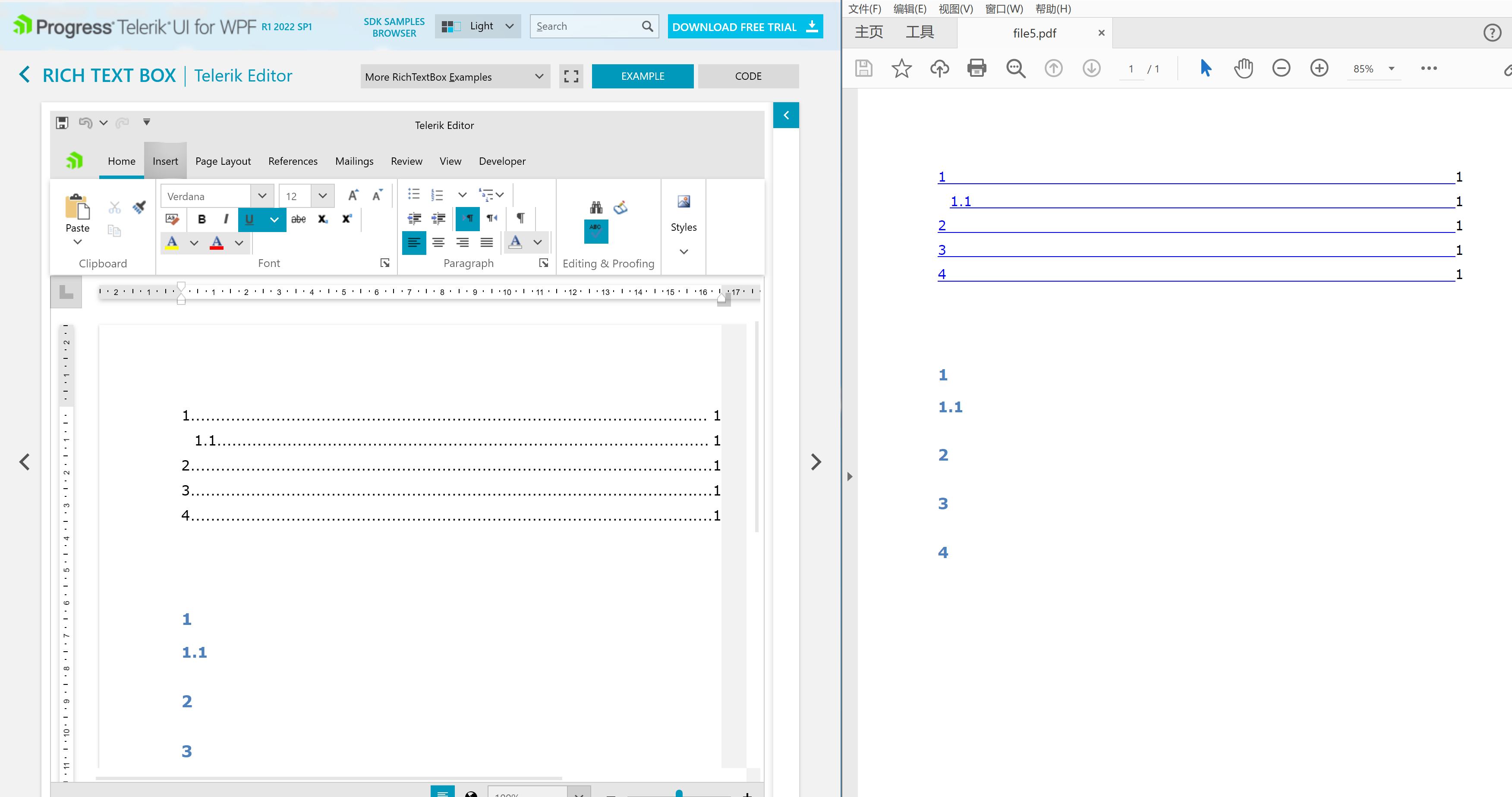 I created a new file in the RadRichTextBox , edited some text and set the style as header, then referenced the table of contents in the file.