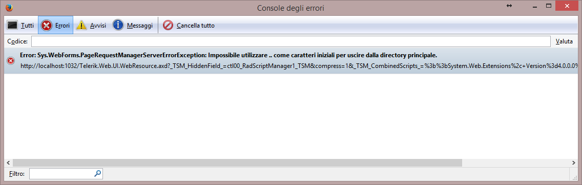 Putting the same program in the root the error does not come out, while in a sub site the program stops for errors in javascript.