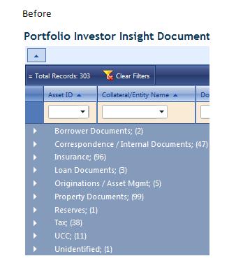 Imports System.Data Imports System.Data.SqlClient Imports System.Configuration Imports XXXX.Administration Imports System.Xml Imports System.IO Imports System.Diagnostics Imports XXXX.YYYY.Security.Scrambling Imports Telerik.Web.UI Public Class DocumentTrackingPI2 Inherits XXXX.YYYY.Base.BasePage Private dsSource As DataSet Private dsDest As DataSet Protected Sub Page_Load(ByVal sender As Object, ByVal e As System.EventArgs) Handles Me.Load '========================================================================= 'OLD CODE ' In this section we are pulling the components of the passed query string ' and assigning them to the base page structure object called "vs" '========================================================================= Dim test As String = "" If Not IsPostBack Then 'Descramble query string parameter Dim QueryString As NameValueCollection = DescrambleQueryString(Request.QueryString("DocumentTracking")) Me.vs.CallingProcess = QueryString("CallingProcess") '08/27/2008 SP: Need to set a cookie so that we can determine what the 'calling(Process) is even if the session time's out, that way we can 'prevent the user from being directed to the login page. Dim aCookie As New HttpCookie("CallingProcess") aCookie.Value = QueryString("CallingProcess") Response.Cookies.Add(aCookie) Me.vs.DatabaseName = QueryString("DatabaseName") Me.vs.ServerName = QueryString("ServerName") Me.vs.Filetype = QueryString("FileType") Me.vs.PortfolioID = QueryString("PortfolioID") Me.vs.CtrlID = QueryString("CtrlID") '05/19/2008 Robert Goen - Replaced LnID with CtrlID Me.vs.PropertyID = QueryString("PropertyID") Me.vs.PageTitle = QueryString("PageTitle") & " Documents" Me.vs.SessionGuid = New Guid(QueryString("SessionGuid").ToString) Me.vs.ColID = QueryString("ColID") Me.vs.LnID = QueryString("LnID") 'Me.vs.LnSubID = QueryString("LnSubID") Me.vs.DocumentViewingPageSearch = QueryString("DocumentViewingPageSearch") '========================================================================= ' Set up a hyperlink to a help document that will assist people with ' how to filter and sort (as of this note 2/25/2011, have not received the ' help document from the technical writers). '========================================================================= hlFilterHelpDoc.Visible = True '========================================================================= BuildDocumentGrid() GetDocumentGroupHeader() End If End Sub Public Property Groups() As Hashtable Get If ViewState("Groups") Is Nothing Then Dim res As New Hashtable() ViewState("Groups") = res Return res End If Return DirectCast(ViewState("Groups"), Hashtable) End Get Set(ByVal value As Hashtable) ViewState("Groups") = value End Set End Property Private Sub BuildDocumentGrid() '========================================================================= 'NEW CODE '========================= 'Telerik Grid Build '========================= ' Initial settigs With radGridDocuments .Visible = True .ShowStatusBar = True .GroupingEnabled = True .ShowGroupPanel = True .AllowSorting = True .SortingSettings.SortedBackColor = Drawing.Color.Aquamarine .AllowFilteringByColumn = True .AllowPaging = True .PagerStyle.Position = GridPagerPosition.Top .PagerStyle.Mode = GridPagerMode.NextPrev .PagerStyle.AlwaysVisible = False .AutoGenerateColumns = False .Skin = "Web20" .Width = Unit.Percentage(100) .Height = Unit.Point(500) .BorderStyle = BorderStyle.None ''====================================================================== ''Disable case sensitive for filtering. NOTE: Setting case sensitivity ''can conflict with Linq for some reason according to Telerik. radGridDocuments.GroupingSettings.CaseSensitive = False radGridDocuments.EnableLinqExpressions = False End With With radGridDocuments.ClientSettings .AllowDragToGroup = True .Scrolling.AllowScroll = True .Scrolling.UseStaticHeaders = True End With With radGridDocuments.MasterTableView .GroupsDefaultExpanded = False .AllowMultiColumnSorting = True '.DataKeyNames = New String() {"ImgID"} .PageSize = 2500 .Width = Unit.Percentage(100) .HierarchyLoadMode = GridChildLoadMode.Client .FilterItemStyle.HorizontalAlign = HorizontalAlign.Center .HeaderStyle.HorizontalAlign = HorizontalAlign.Center .HeaderStyle.Font.Bold = True .HeaderStyle.Font.Size = FontUnit.Larger .HorizontalAlign = HorizontalAlign.Left .EnableViewState = True End With 'Add Customers table ' Disable the filtering option for some of the grid columns by setting ' their "AllowFiltering" property to False. Dim boundColumn As GridBoundColumn boundColumn = New GridBoundColumn() radGridDocuments.MasterTableView.Columns.Add(boundColumn) boundColumn.DataField = "FullLnID" boundColumn.HeaderText = "Asset ID" boundColumn.AllowFiltering = False boundColumn.ItemStyle.Width = Unit.Percentage(8) boundColumn.HeaderStyle.Width = Unit.Percentage(8) 'This one will not be visible but we count records on boundColumn = New GridBoundColumn() radGridDocuments.MasterTableView.Columns.Add(boundColumn) boundColumn.DataField = "ProspectusLnNo" boundColumn.HeaderText = "Prospectus ID" boundColumn.Visible = False boundColumn = New GridBoundColumn() radGridDocuments.MasterTableView.Columns.Add(boundColumn) boundColumn.DataField = "PropertyName" boundColumn.HeaderText = "Collateral Name" boundColumn.AutoPostBackOnFilter = True boundColumn.ItemStyle.Width = Unit.Percentage(16) boundColumn.HeaderStyle.Width = Unit.Percentage(16) 'This one will not be visible but is grouped on boundColumn = New GridBoundColumn() radGridDocuments.MasterTableView.Columns.Add(boundColumn) boundColumn.DataField = "DGDesc" boundColumn.HeaderText = "Document Group" boundColumn.Visible = False '============================================================================= 'Format the link column: ' To populate the Telerik DataNavigateUrlFormatString I could not use the standard ' means provided by Telerik. This is why you do not see it here. We encrypt the ' query string, and since it is different from record to record, I had