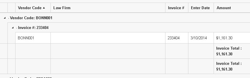 I'm having a minor issue with showing aggregate totals when using 2 levels of grouping on a Grid. My grid is grouped by Vendor then invoice and the totals show once for each level of grouping. This is what I want but when there is only one invoice in the group it looks quite confusing (please see attached). Is there a way in the ClientGroupFooterTemplate to check which level of grouping is currently being shown so I can change the labelling accordingly? So something like the below but I don't know how I would calculate the function IAmInvoiceTotal().