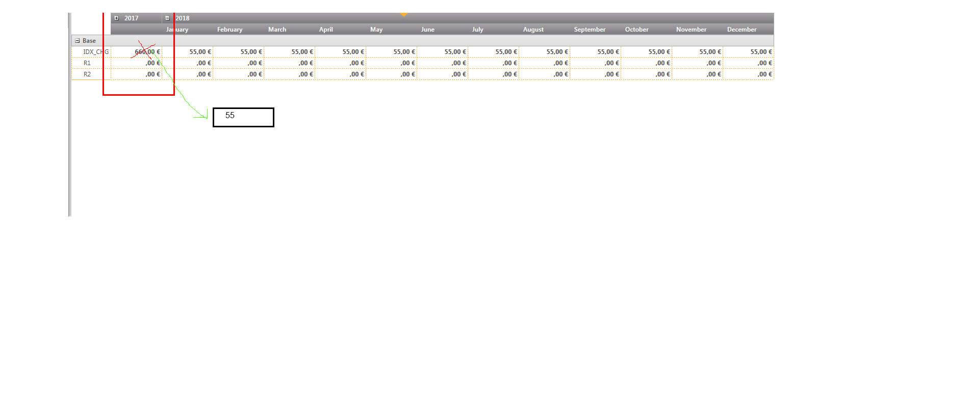Now cover, in some cases, for example the "IDX_CHG" object (as a property in this object), when I collapse in 2007, I would have the value "55" (which corresponds to the value of December 2007) and not the sum of the different values of months: 55 + ... +55 = 660.