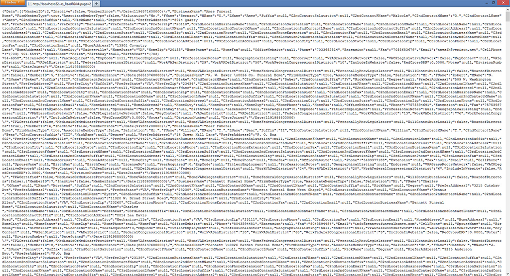 When I try and page to the next page in the grid I get the raw data instead of the HTML page with the grid displayed..See attachment.