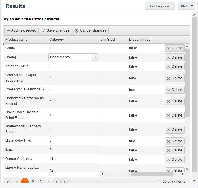 If you click ProductName in second row and tab next twice to go to Unit Price cell, the grid has problems with Category cell ; the grid doesn't close this cell and doesn't edit Unit Price. It seems that (simulated) Category cell remains invalid and the focus is surprisingly in the Delete input in the first row.
