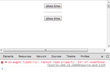 A very simple page with a repeater control. each row in the repeater has a button, clicking the button will change the button text to current time. But get js error when click the button after ajaxified the button. the error says "Uncaught TypeError: Cannot read property 'id' of undefined". the full set of code is attached below. can anyone help to have a look? Thanks in advance.