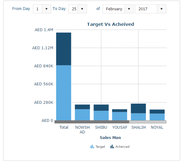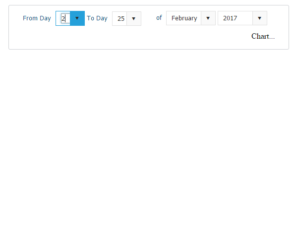 <telerik:RadAjaxManager ID="RadAjaxManager1" runat="server"> <AjaxSettings> <telerik:AjaxSetting AjaxControlID="ddlFromDay"> <UpdatedControls> <telerik:AjaxUpdatedControl ControlID="litTargetSales" LoadingPanelID="RadAjaxLoadingPanel1"></telerik:AjaxUpdatedControl> </UpdatedControls> </telerik:AjaxSetting> </AjaxSettings> </telerik:RadAjaxManager> <telerik:RadAjaxLoadingPanel ID="RadAjaxLoadingPanel1" runat="server"> </telerik:RadAjaxLoadingPanel> <telerik:RadFormDecorator RenderMode="Lightweight" ID="FormDecorator1" runat="server" DecoratedControls="Buttons"></telerik:RadFormDecorator> <fieldset> <telerik:RadPageLayout ID="rplTargetAcheived" runat="server" GridType="Fluid"> <Rows> <telerik:LayoutRow> <Columns> <telerik:LayoutColumn Span="6" CssClass="tdmakeright"> <telerik:RadLabel ID="lblFromDay" runat="server" Text="From Day" Skin="MetroTouch" RenderMode="Lightweight"></telerik:RadLabel> <telerik:RadComboBox ID="ddlFromDay" runat="server" Filter="StartsWith" Skin="MetroTouch" RenderMode="Lightweight" Width="59px" AutoPostBack="true" OnSelectedIndexChanged="ddlFromDay_SelectedIndexChanged"></telerik:RadComboBox> <telerik:RadLabel ID="lblToDay" runat="server" Text="To Day" Skin="MetroTouch" RenderMode="Lightweight"></telerik:RadLabel> <telerik:RadComboBox ID="ddlToDay" runat="server" Filter="StartsWith" Skin="MetroTouch" RenderMode="Lightweight" Width="59px" AutoPostBack="true" OnSelectedIndexChanged="ddlToDay_SelectedIndexChanged"></telerik:RadComboBox> </telerik:LayoutColumn> <telerik:LayoutColumn Span="6" CssClass="tdmakeleft"> <telerik:RadLabel ID="lblof" runat="server" Text="of" Skin="MetroTouch" RenderMode="Lightweight"></telerik:RadLabel> <telerik:RadComboBox ID="ddlMonth" runat="server" Filter="StartsWith" Skin="MetroTouch" RenderMode="Lightweight" Width="100px" AutoPostBack="true" OnSelectedIndexChanged="ddlMonth_SelectedIndexChanged"></telerik:RadComboBox> <telerik:RadComboBox ID="ddlYear" runat="server" Filter="StartsWith" Skin="MetroTouch" RenderMode="Lightweight" Width="100px" AutoPostBack="true" OnSelectedIndexChanged="ddlYear_SelectedIndexChanged"></telerik:RadComboBox> </telerik:LayoutColumn> </Columns> </telerik:LayoutRow> </Rows> <Rows> <telerik:LayoutRow> <Columns> <telerik:LayoutColumn Span="12" CssClass="tdmakeright"> <asp:Literal ID="litTargetSales" runat="server"></asp:Literal> </telerik:LayoutColumn> </Columns> </telerik:LayoutRow> </Rows> </telerik:RadPageLayout> </fieldset>