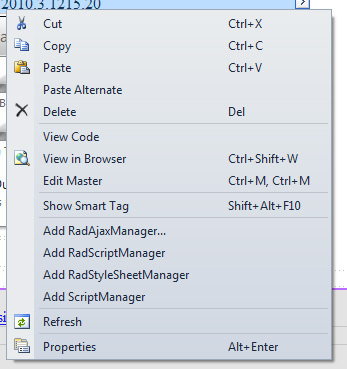This issue happens because you are using right-button click on the control. Please use left-button click on the control's smart tag. I am sending you a screenshot as attachment how would it look like. For additional information please consult with this helpful article.
