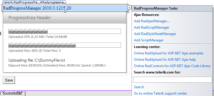 After that, register the Telerk.Web.UI.RadProgressManagerHandler.ashx and RadUploadModule(with left button click on the smart tag(screenshot).