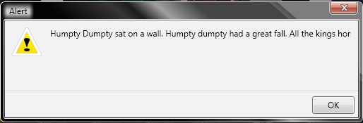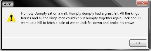RadWindow.Alert(new TextBlock { Text = "Very long long text", Width = 150, TextWrapping = TextWrapping.Wrap });Hope this helps.
