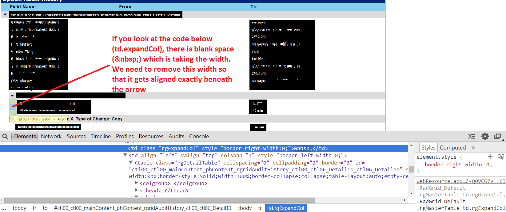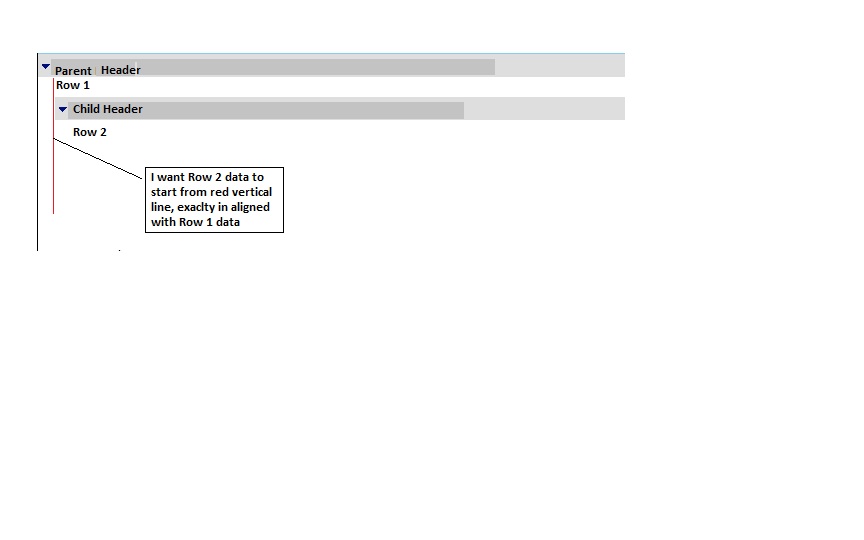 Note that the cell which contains the arrow is a ExpandCollapse column. I am afraid that starting the row from beneath the arrow is not possible as it might break the layout of the entire grid.