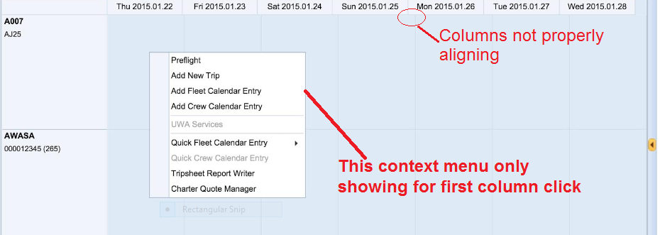 1) First issue is RadSchedulerContextMenu is opening only on first column (Any row's first column) click