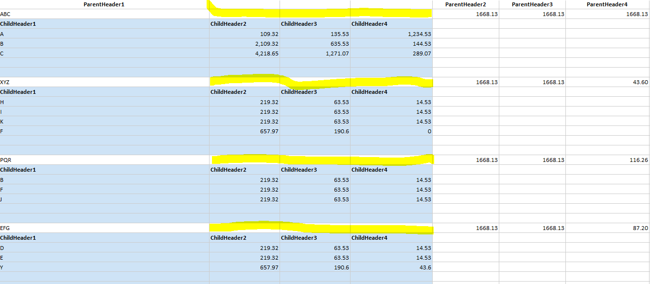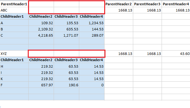 I am facing alignment issue while exporting hierarchical radgrid data to excel. Please find below by code