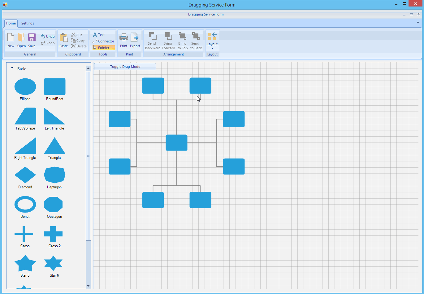 I would like to know if it's easily possible to allow only horizontal moves for all shapes in a radDiagram.