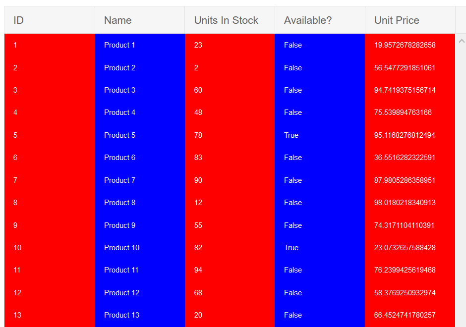 How could I get alternate COLUMN colors? Note, not alternate ROW colors.